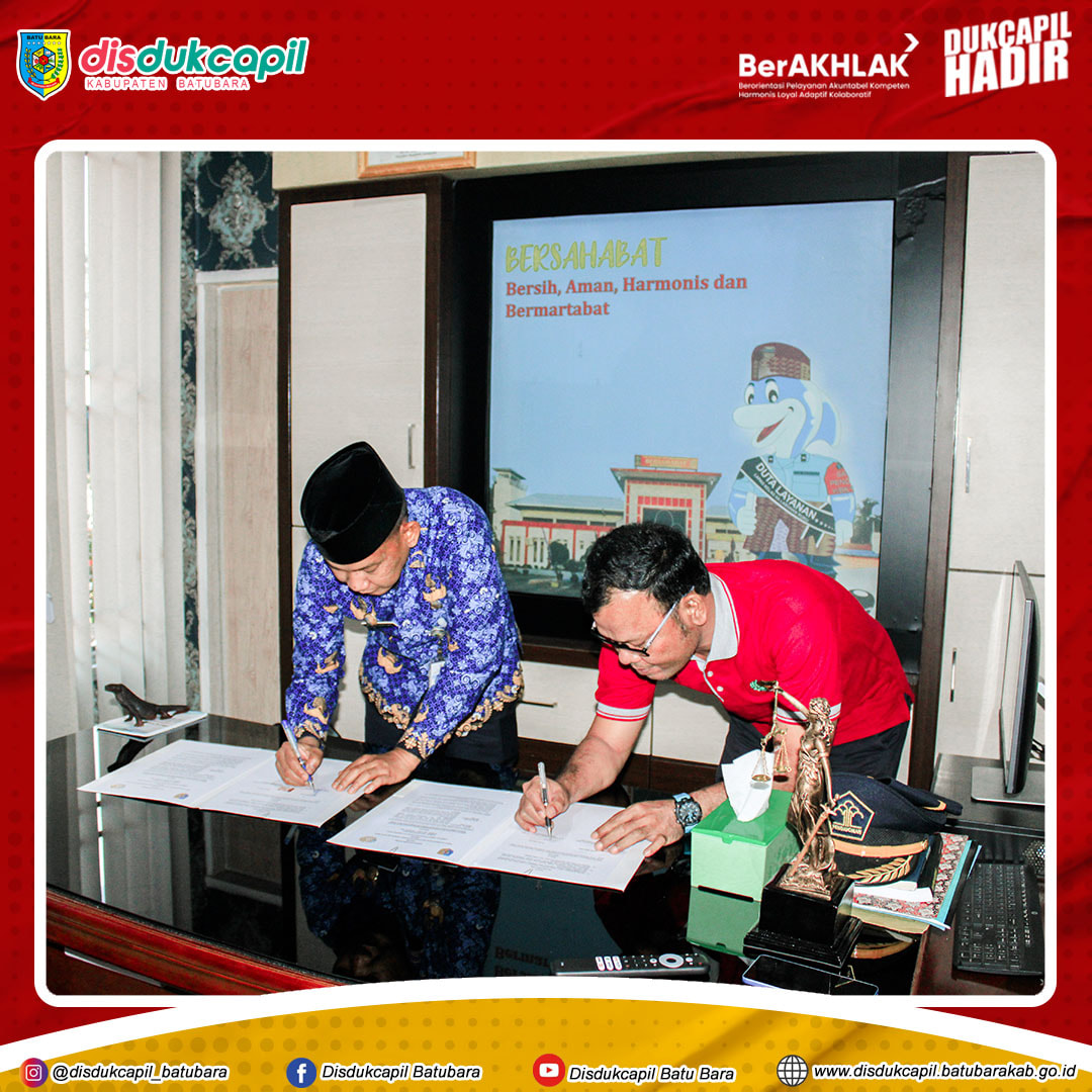 Disdukcapil Kab. Batu Bara bekerjasama dengan Lembaga Pemasyarakatan Kelas IIA Labuhan Ruku Melakukan Perjanjian Kerjasama terkait pendataan dan pelayanan dokumen kependudukan warga binaan pemasyarakatan (WBP) di Lembaga Pemasyarakatan Kelas IIA L...