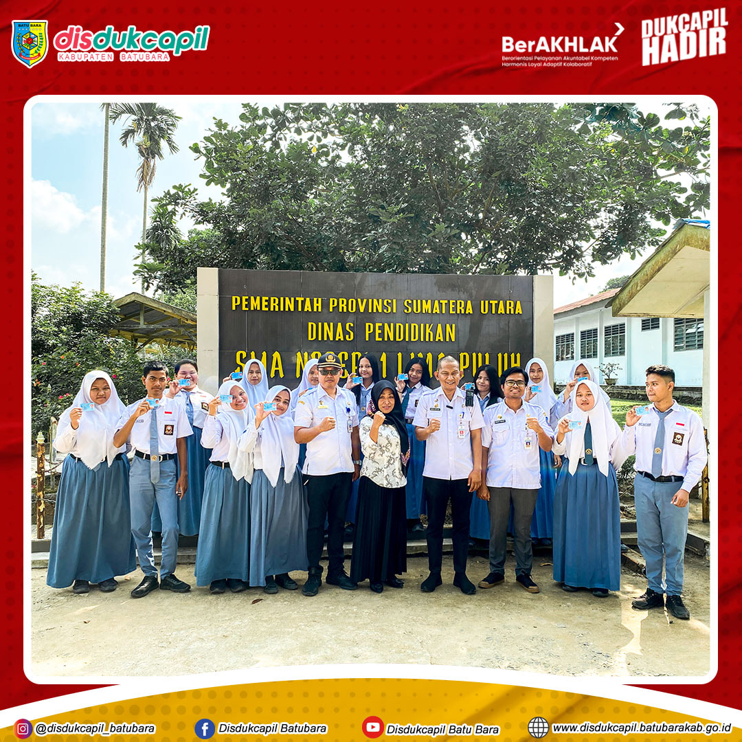 Disdukcapil Kab. Batu Bara melakukan kunjungan ke SMAN 1 Lima Puluh dalam rangka kegiatan Dukcapil Go To School, dengan membuka pelayanan perekaman KTP elektronik Wajib KTP pemula bagi siswa sekolah tersebut. Rabu, 08/03/2023